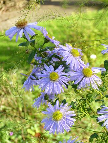 Hier ist in der Farbe alles dunkler als im Hohen Norden! ;DAber Aster 'Blue Heaven' übertrifft sich selbst mit ihren Kaskaden.