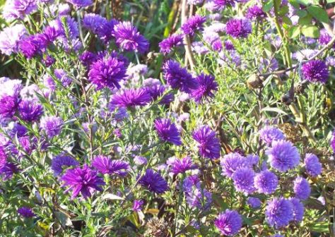 Scheint ein sehr guter Trick mit dem Hochbinden zu sei, Oliver. Ich würde sie zu gern noch einmal pflanzen, mal schauen. Purple Dome ist wunderbar, hat eine ganz besondere Farbe, ist aber im Grunde genommen, wie die meisten Chrysanthemen, für unseren Garten zu spät. So richtige Sonnenplätze werden allmählich rar im Garten. Und wenn die Sonne nicht mehr hoch steht, bekommen die Spätblüher zu wenig und sehen deshalb blühfaul aus. Hast Du in Deinem Schatten mal Aster divarictus ausprobiert? Wenn Du humosen Boden hast, müsste sie doch bei Dir Prachtexemplare abgeben? Dazu kommt noch, dass sie eine leichte Blattfärbung im Herbst haben