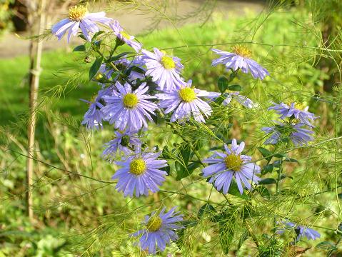Hier ist in der Farbe alles dunkler als im Hohen Norden! ;DAber Aster 'Blue Heaven' übertrifft sich selbst mit ihren Kaskaden.