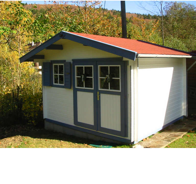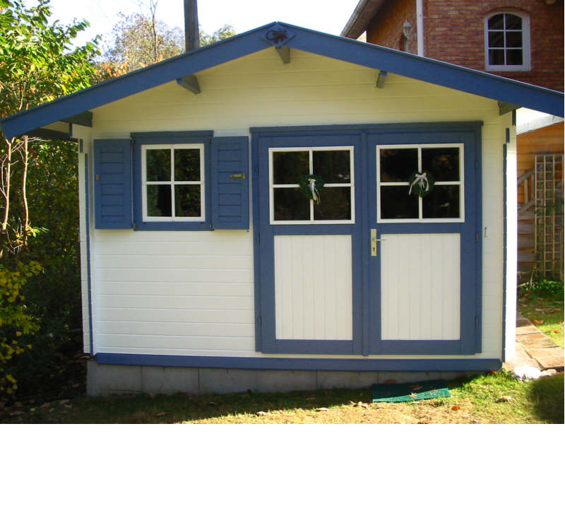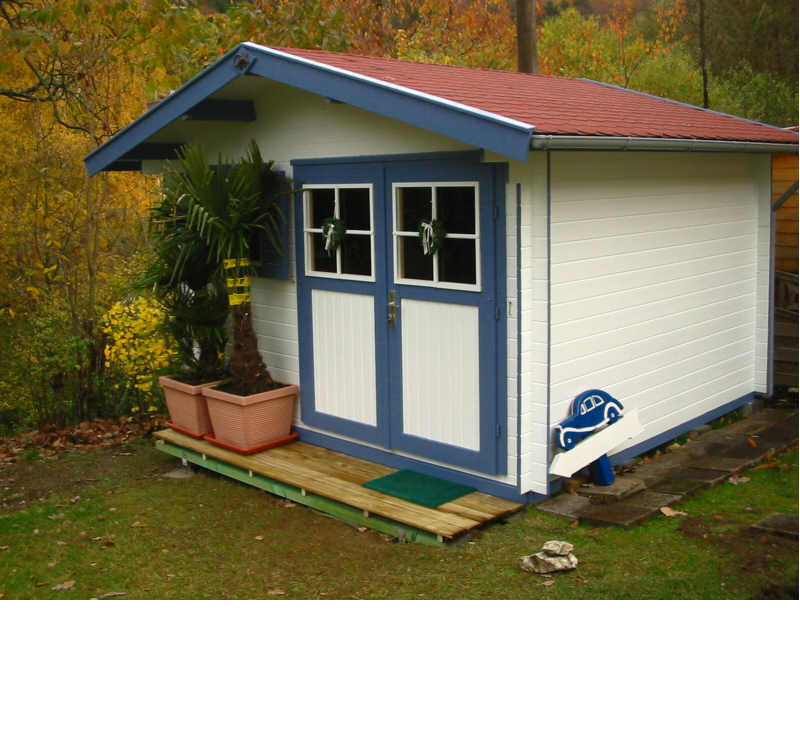 .Ich war erstaunt, dass Frau so ein Ding ganz alleine so einfach und ohne Katastrophen aufbauen kann, allerdings hab´ ich die allerersten Balken wohl einen halben Tag hin und hergerückt und genau ausgerichtet, aber dann ging´s ratz fatz.Die meiste Geduld forderte dann nochmal die Eindeckung des Daches (vom vielen Hämmern schmerzten die Handgelenke fast noch mehr, als nach dem Annageln der Bodendielen oder der Dachdielen), da hat das Wetter mitgespielt und das Warten auf passendes Wetter zum Streichen. Das Haus hat jetzt die gleiche Farbgebung wie das Knusperhäuschen, ich hoffe, es wird nicht all zu schnell grün, ich habe nach der Grundierung vorsichtshalber recht teure Wetterschutzfarbe zweifach aufgetragen.Und die Dachrinne war dann nach Duplo und Lego-Übungen ein Fischertechnik-Projekt. Seit dem Wochenende fließt das Wasser beider Dachseiten etwas kompliziert zurück Richtung Bach, im nächsten Sommer wird dann noch die eine oder andere Regentonne angeschlossen. Und an das Betonfundament mörtele ich noch die beim Aushub angefallenen Natursteine an. Der Fußboden innen ist mit Parkettlack gestrichen, jetzt geht´s ans Einräumen und daran zu planen, was dort nächstes Jahr noch nettes zum Behübschen wachsen soll!Ich freu mich so, dass es endlich fertig ist, den Platz brauchten wir unbedingt