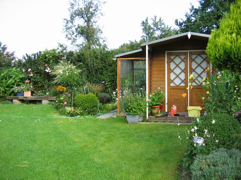 hihi, eines meiner häßlichen Tomatenhäuser musste dieses Jahr sogar umziehen, weil es genau dort stand, wo jetzt das Gartenhäuschen steht, war halt ein sonniger Platz, aber es gibt noch andere. An ein kleines Anbau-Gewächshaus hatte ich auch schon mal gedacht (Südseite), aber wieder verworfen, wegen Feuchtigkeit und einigen Rangierproblemen mit dem Fuhrpark (VW-Bus glitschend am steilen Hang macht sich nicht so gut im Glaspalast-im Holzhaus aber auch nicht....)