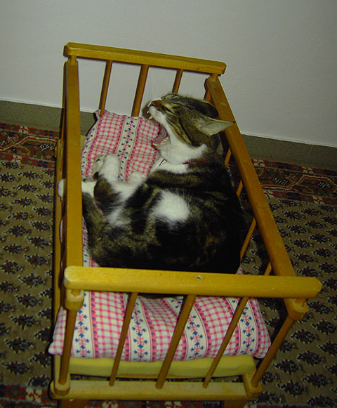Nein, Tochter hat das Puppenbett rausgeschmissen. Der guckt aber dackelig. Hab geglaubt, der meint mich!
