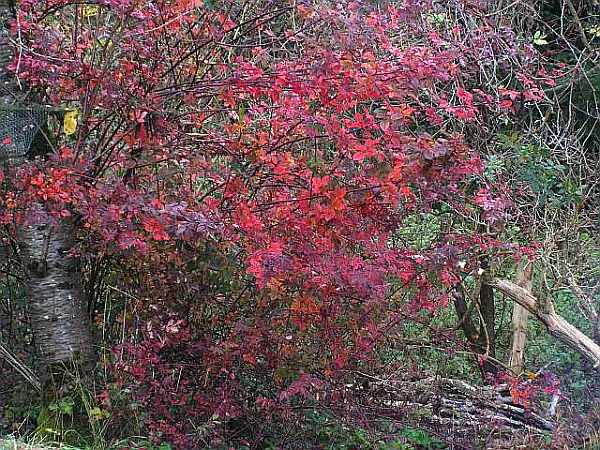 Hier einer der zuverlässigsten Herbst-Rot-Färber (unabhängig vom Witterungsverlauf !) und eine der Pflanzen, die ihr rotes Laub unheimlich lange halten, ohne es nach braun umzufärben oder es nach ein paar Tagen abzuwerfen.Ja, es gibt spektakulärere "Herbst-Pflanzen", aber wenige, die "narrensicherer" und zuverlässiger sind. Die Blüte in grenzwertigem Pink muß man in Kauf nehmen ... und Platz sollte man haben - aber dann ...