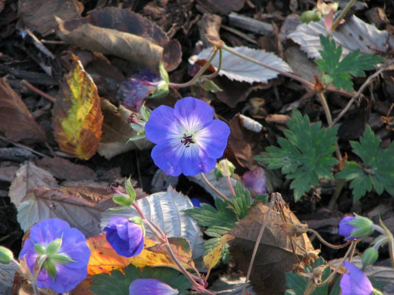 Rozanne wechselt ihre Farbe wirklich je nach Witterung.Seit Juni blüht sie bei mir mit Mavis Simpson um die Wette, Nimbus und ox. Wageningen sind auch recht fleißig, Patricia zeigt noch immer keine einzige Blüte, ist aber wunderschön gewachsen.