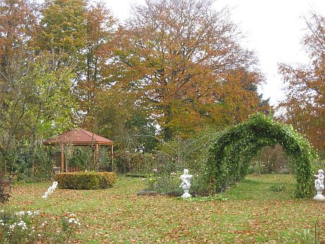 Ist das der Tunnel, den du letztes Jahr gebaut hast? Die Rosen können doch nicht so schnell gewachsen sein?Hallo Freunde der Rosengerüstehier ein Bildchen der Brunnenwiese. Rechts der Rosentunnel. In der Mitte mußte der Rosenbaum 4m verlängert werden und links hat meine GG noch ein überdachtes Gestell bekommen.Was soll ich denn nun indiesen Winter noch bauen? MfG Helene und Josef.
