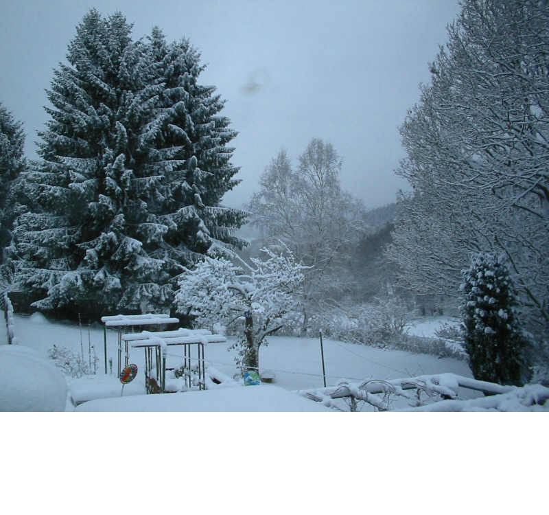 Der Schneefall am Montag war harmlos, Frau Holle hat erst heute richtig zugeschlagen: Von heute Nacht an bis vor ein paar Minuten hat es ununterbrochen geschneit, was das Zeug hielt, bis zum Nachmittag wegen des starken Windes meist in horizontaler Richtung. In den richtigen Höhenlagen ist unser Top-Winterdienst stellenweise nicht mehr nachgekommen. Glück im Unglück: Die Temperaturen lagen/liegen nur um den Gefrierpunkt.