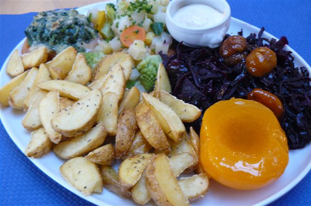 heute habe ich einen Gemüseteller mit Ofenkartoffeln bestellt