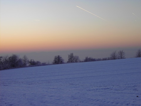 So, ich war vorgestern abend auch wieder spazieren, dieses Mal aber über die Höhe oberhalb des Städtchens über die Felder:da kam ich her, die Sonne geht in meinem Rücken unter...