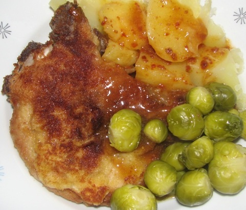 heute gab es kotelett,kartoffel und rosenkohlgemuese (die letzten aus dem eigenen garten