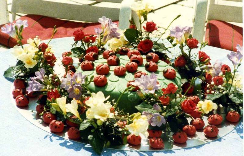 Hallo Lemo, nie geheiratet? Eigentlich weiß man, dass man Hochzeitstorten teilweise mir Rosen und anderen Blüten dekoriert.
