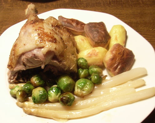 Mein Bio-Bauer grinste, und meinte;Ich hätte da eine frisch gerupfte 1,6 Kg Barbati für sie.deswegen: Ente mit Ofenkartoffel- Spargel und Rosenkohl- mit Sosse oder Dipp.PS: - OT-In eigener Sache. lalilu - soso Ich war mir Bewusst, dass mein eigenwilliger Stil, in Garten und Küche, gewöhnungsbedürftig war.So essen wir nach Angebot und Laune, Montags festlich und Sonntagsauch mal karg, nur Salat oder Quark.Meine Berichte waren auch in den anderen Threads, aber stets zeitnah und ehrlich.Habe auch versucht, es mit Bildern zu hinterlegen, dies wurde mir dann wieder als Angabe ausgelegtIch wollte nie provozieren oder polemisieren.Leider wird mir dies bis heute, auch nach versuchten Wechsel in Stil und Namen,immer noch hinterher geschmissen.Ich wollte nie jemand umpolen, nur auf anderes aufmerksam machen.Schade dass dies nicht toleriert werden kann / konnte.Die User die sich bei der Führungsetage über mich beschwerten,haben sich komischer weise, weder vorher noch nachher bei mir gemeldet .So weis ich bis heute nicht, was ich so verwerfliches an mir habe.Ich dachte bisher immer, ein Forum lebt von Toleranz und Meinungsvielfalt,denn man lernt ja nie aus.