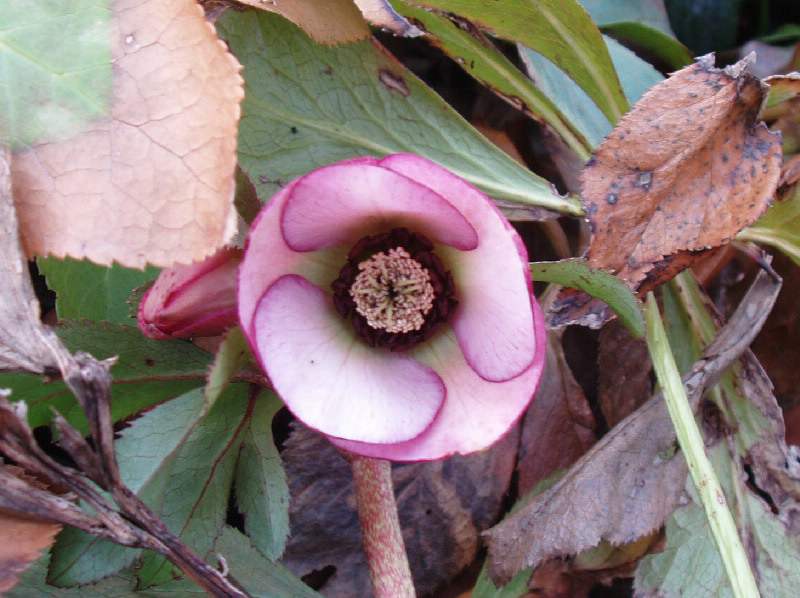 Irgendwann im letzten Winter bin ich dann doch schwach geworden #1488 und habe eine Kiste Helleborusmischung gekauft. Ein Nachtrag. Diese Pflanze steht im Topf und zusammen mit etlichen anderen im ungeheizten Folienzelt. Sie war komplett eingefroren und der Blütenstängel war völlig schlapp. Gegen alle Befürchtungen hat sie sich ohne Schäden zu zeigen erholt.