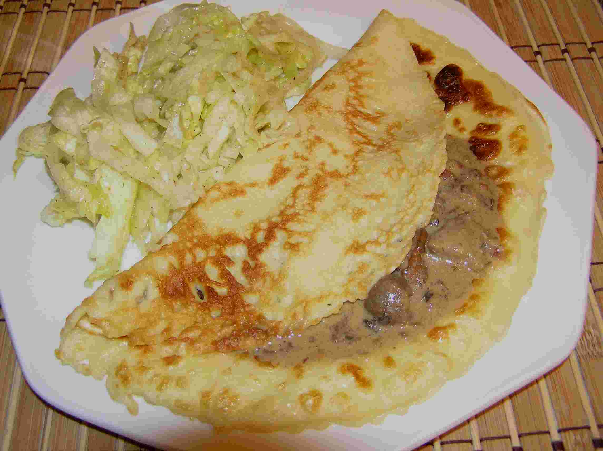 heute gabs pfannkuchen mit maronenröhrlingsrahm (die letzten selbst gesammelten aus dem tk) und eisbergsalat...und danach noch zwei mit erdbeermarmelade....pappsatt!