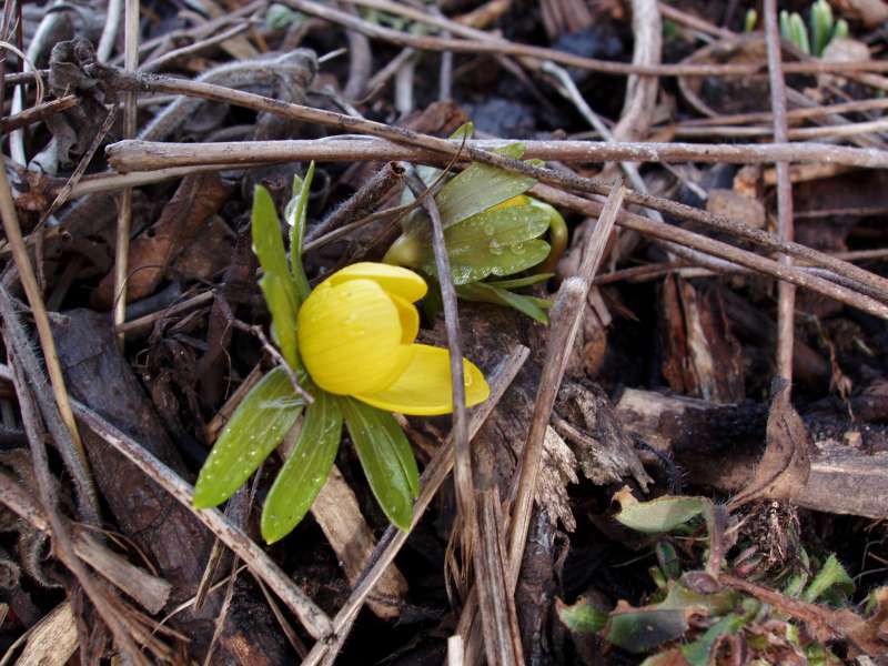 Auch hier kommt und geht die Kälte, kommt der Schnee und schmilzt wieder. Schon die letzte Wochen haben sich die Winterlinge etwas hervorgewagt, jetzt halt wieder durch den Schnee: