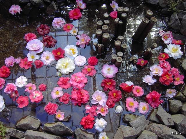 Ich hätte mich wirklich sehr gefreut, dich wieder zu sehen.Dorothea und ich hatten eine Spontan-Aktion gemacht. Von jetzt auf gleich telefoniert, paar Minuten später ins Auto und los. Das nächste Mal melden wir uns aber ganz bestimmt vorher bei dir, wenn wir Richtung Norden fahren.Im Gewächshaus waren die Kamelien in Vollblüte, im Freiland war noch weiter nix.Blütensammlung im Teich: