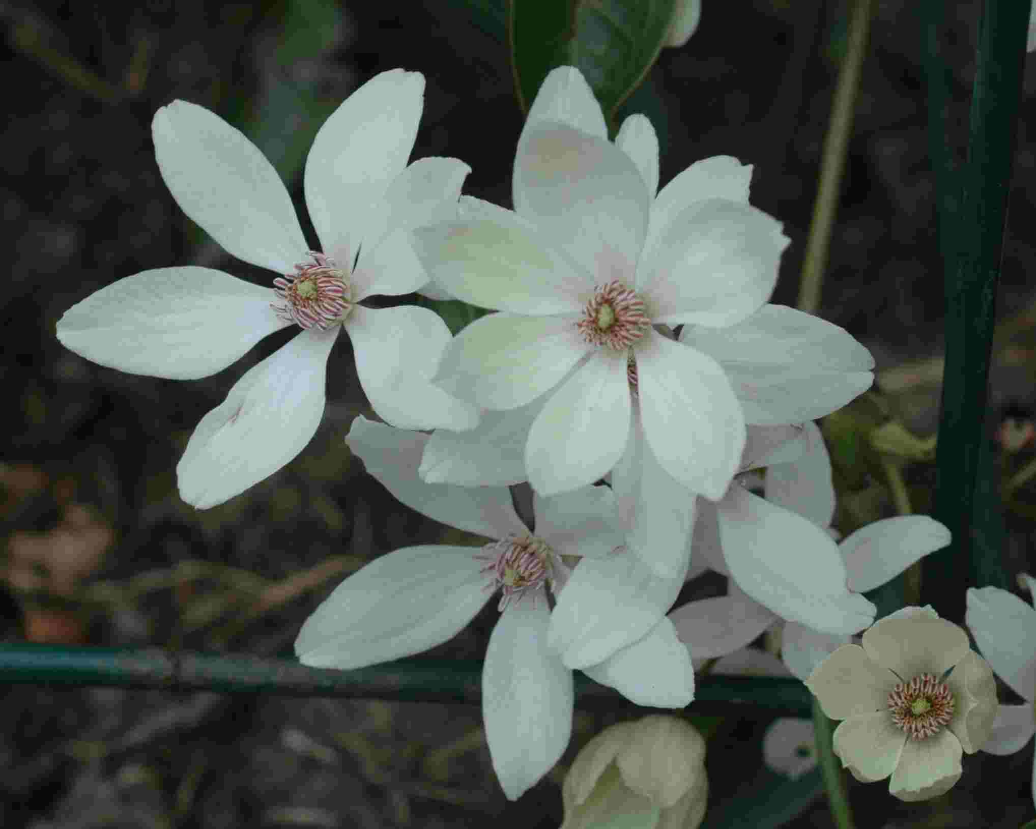 Clematis gracilifolia hat weisse Bluete und ist verwandt an montana. Ich habe eine Kreuzung gemacht gracilifolia x montana 'Fragrant Spring'.Blüte 5-6 cmNicht ganz winterhartHöhe 2-5 m Blütezeit April-Mai