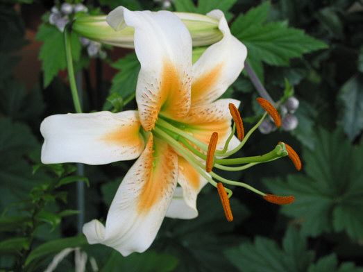 Hallo CimiDeine erworbene Lady Alice wird unter den Trompetenlilienhybriden geführt. Die Lilie wurde vor etlichen Jahren von einem holländischen Züchter, de Jong, in den Umlauf gebracht. Die genaue Abstammung ist nicht bekannt. Auf keinen Fall ist L.martagon als Elternteil beteiligt.L.henry könnte aber eine Rolle bei der Kreuzung mitgespielt haben.Eine ähnliche Lilie ist Bright Star, auch ein Trompetenlilienhybride. LGFuliro