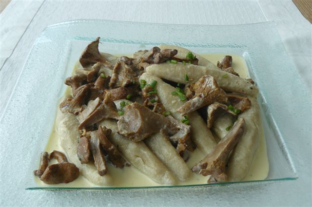es gab:Karottensalat mit Rosinen, Ingwer und etwas CurrySchupfnudeln mit Pfifferlingen an einer Weissweinsauce