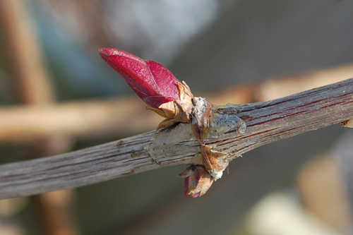 Und doch habe ich dies und jenes mit Frühlingsanzeichen entdeckt. Die rote Zaubernuss blüht: