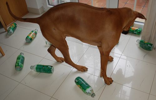 Auch diese Flaschen sammle ich, es ist nicht so einfach, das Futter da wieder raus zu bringen. Springt der Hund drauf, meine macht das oft so. kommen die Futterbröckchen gar nicht mehr raus.