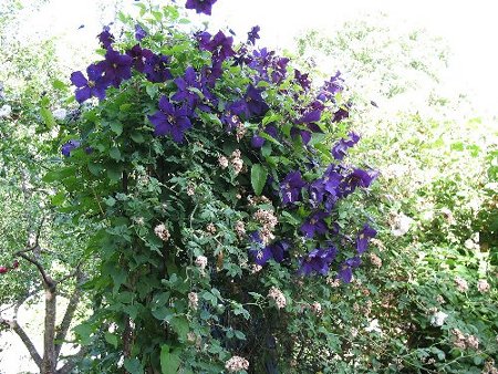 in einem Garten einer Rosenfreundin gibt es viele doppelt und dreifach gepflanzten Clematis. Die Idee war, dass sie sich in der Blütezeit abwechseln sollen. Damit "immer etwas blüht".Ich bin kein Vertreter der "immer etwas blüht" Richtung. In meinem Garten habe ich es für sehr praktisch gehalten Clematis verschiedener Schnittgruppen immer an verschiedene Stellen und tragfähige Nachbarn zu setzen. Wenn zwischen den Pflanzstellen mindestens 50 cm Abstand ist, dann kann ich mir auch vorstellen die frühlingsblühenden Clematis mit den spätblühenden zu kombinieren und dazu noch eine Staudenclematis davorzusetzen. Manche Situationen im Garten, manche Gehölze lassen das zu.