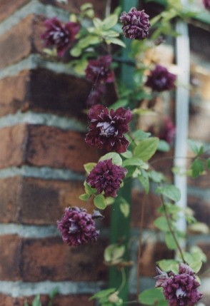 ) Abundance habe ich mit unseren beiden Rosen New Dawn kombiniert, d.h. sie in die Mitte zwischen beiden Rosen gepflanzt. Das war auch so ein Experiment, da ich nicht wußte, wie der Rot-Ton dieser Clematis ausfällt. Der Ton enthält aber einen ziemlichen Pink-Anteil, was wunderschön aussieht.Black Prince soll von den Eigenschaften sehr gut sein, Herr Westphal sagte mir, diese Clematis stehe farblich zwischen Etoile Violett und Romantika. Da die Blütenform anders ist als bei Etoile Violett, wäre es für mich nach der Purpurea P. Elegans die zweite Wahl. Ich denke, dass ein sehr dunkles Rot, selbst wenn es im Verblühen verblaßt, gut zur R.d.V. und zu meiner sonstigen Bepflanzung passen müsste. Ich werde schon wieder unentschlossen. Seufz! Dieser Stress