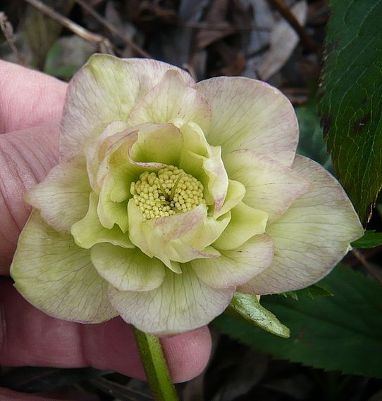 Bei der weiß ich nicht, was ich von ihr halten soll. Eine verhinderte Picotee oder die Urmutter gestreifter Lenzrosen?