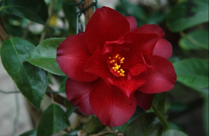 @ Barbara + Monika - Herrliche Blüten! Diese Anlage von Fischer muss ja ein Traum sein!Ich habe heute alle meine Kamelien aus dem Keller geräumt, da entdecke ich doch glatt, dass sich eine Kamelienblüte unbemerkt mitten im Blattwerk geöffnet hat. Es sollte die angebliche Debutante von Aldi sein, sie hatte ja das Etikett dran. Ist es aber auf keinem Fall, ich bin trotzdem nicht böse, weil sie so eine Schöne ist.