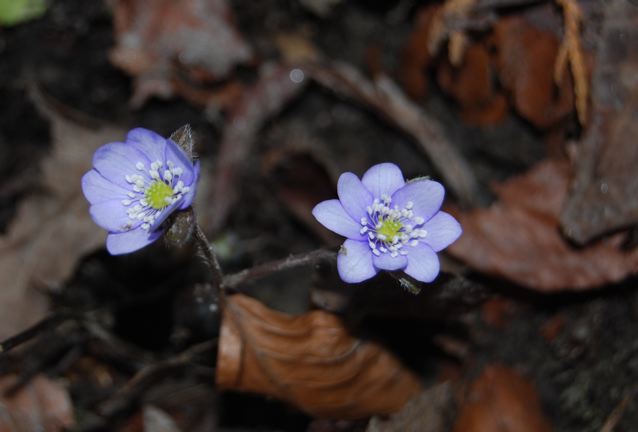Mein marmoriertes Leberblümchen steht trocken mit Morgensonne.