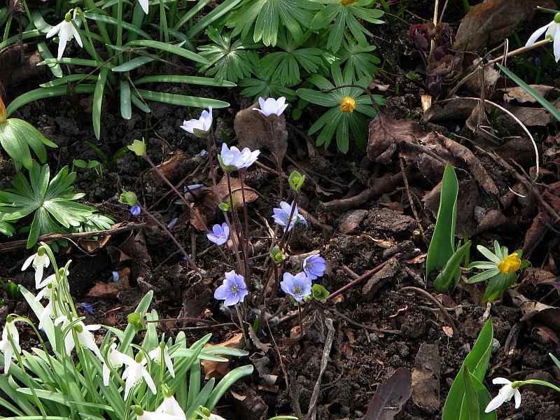 . Hier liegt die Hepaticablüte weit zurück im Vergleich zu den Vorjahren. Vermutlich ist sie im Bereich des schneereichen Winters 2005/2006 anzusiedeln. Aber nachdem alle Pflanzen schon lauern, blühen vielleicht einmal alle zusammen, womit ich bessere Vergleichsfotos machen könnte.