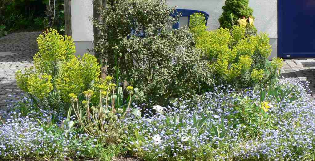 Nichtdestotrotz kann ich Dich verstehen, was die Farbharmonie betrifft. Im Vorgarten habe ich nämlich Geranium 'Terre Franche' in lilablau, was sich in der Blüte mit dem Vergißmeinnicht überschneidet - für mich ein no-go