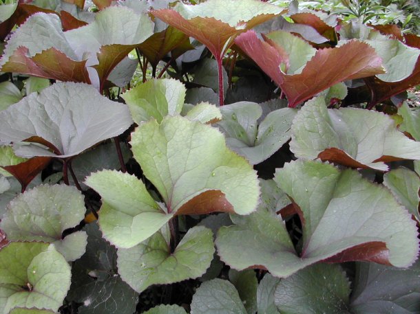 , duften eigenartig würzig und sind bei Schmetterlingen und Hummeln/Bienen sehr beliebt. Das ganze wird über 1,5 m hoch. Auf den vertrockneten, standfesten Blütenstängeln bleibt der Schnee sehr schön liegen und bildet "Anhäufungen", die den Kopfbedeckungen ähneln, die diese erbärmlichen Gestalten tragen, welche die Paläste englischer Edelparasiten bewachen.Rodgersia tabularis ist eine Kategorie für sich, schon der Austrieb im Frühjahr ist spektakulär fremdartig; die Pflanze ist die ganze Saison ansehnlich, der Blütenstand bei Insekten sehr beliebt. Blattgöße scheint aber von Wasser-/Regenangebot abzuhängen, je mehr, desto groß.Anbei Pic vom schon fortgeschrittenen tabularis Austrieb.