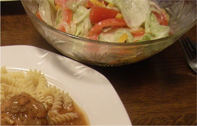 soso,ich beobachte immer interessiert dein Menu, ohne Witze ;)Jeden Tag hat's im Salat so rote Schnitze :DPaprika oder Tomaten ?doch etwa nicht aus dem eigenen Garten ?