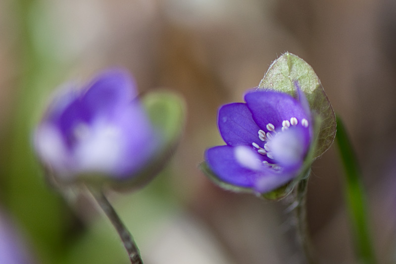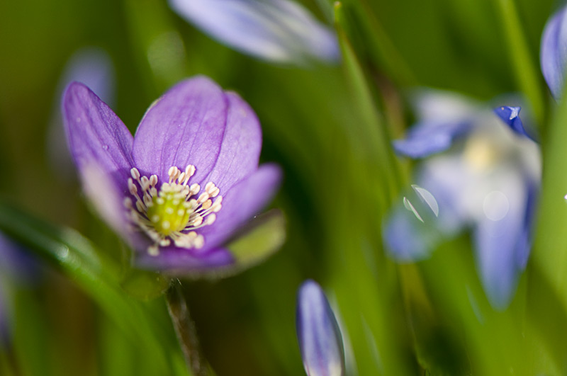 Neben einem Hepatica nobilis hat sich ein Pulk Chionodoxa angesiedelt, eine unmögliche Kombination, denn die Leberblümchen sind violett, die Chionodoxa blau.Hier sind 2 erstaunliche Fotos, es geht nur um die Farbe, die Fotos selber sind eher für den Müll:Zunächst habe ich 2 Leberblümchenblüten isoliert fotografiert, das Violett wurde zu blau, wie so oft.