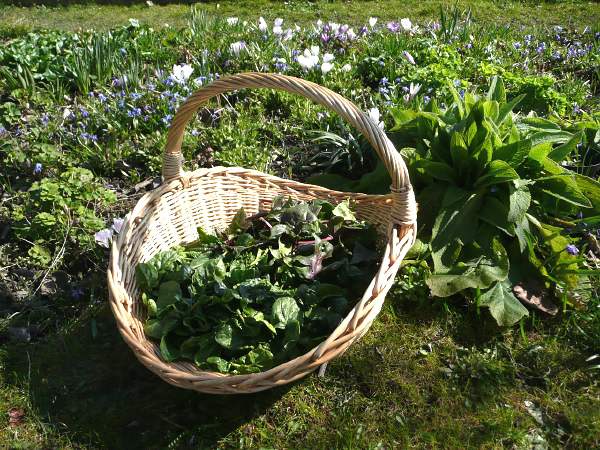 Eine Schüssel voll Löwenzahn und ein paar Wildkräuter.Mein ewiger Kohl ist verfault, ich habe Heute einige Triebspitzen neu gesteckt und hoffe daß noch Leben in ihnen ist.