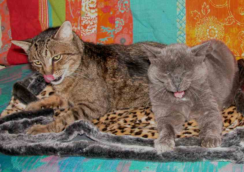 Meisterschaft im Grimassen schneidenOdin und Silver auf der neuen Katzendecke