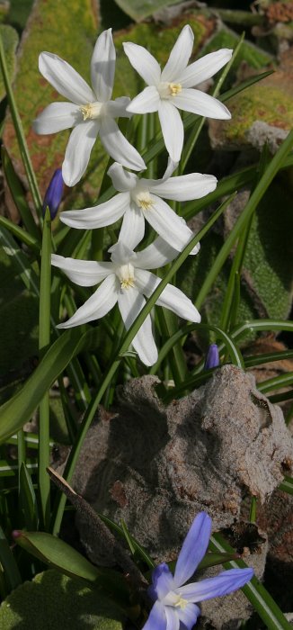 von meinen chionodoxa sardensis im steingarten hatte ich in den letzten jahren so gut wie's ging die samenstände abgenommen + richtung hecke geschmissen zum verwildern. aus den vielen hundert ist heuer ein einziges weißblühendes erschienen