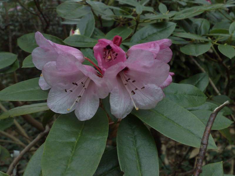 @ fars: Hallo fars verglichen mit den schottischen Gärten spiele ich auch in der dörflichen Liga.Auch kann ich bei dem trockenen Klima in Norddeutschland die Großblattarten niemals zu voller Schönheit heranziehen.Rh.moupinense habe ich zur Zeit nicht.Hatte 3 Pflanzen in 20 Jahren ,die nach 1 bis 3 Jahren eingingen,zweimal Wurzelfäulnis und die weißblühende erfror in einem harten Winter in den Neunzigern.In Ergänzung zu dem zuvor bezüglich über Rh.denudatum/floribundum/coeloneurum gesagten,nochmal Rh.floribundum C.5090 aus der Nähe die botanisch wohl zwischen Rh.floribundum und Rh.denudatum steht.