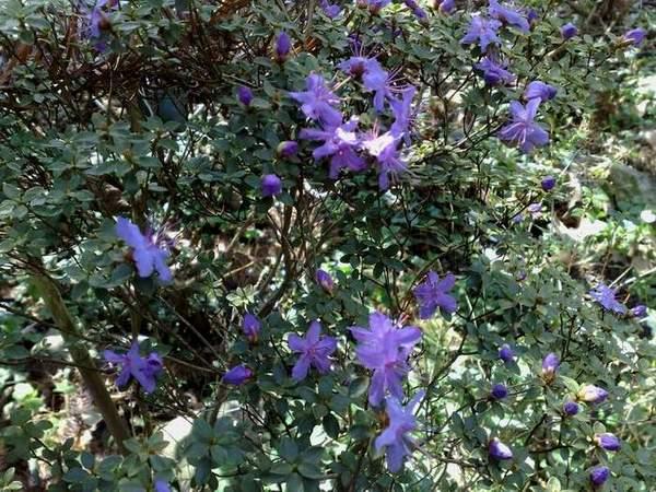 Kleines, unscheinbares Sträuchlein mit erstaunlich großen Blüten: Rh. dendrocharis.
