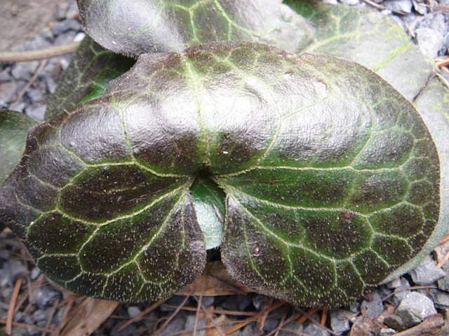 Leider haben A. campaniflorum ,epigynum 'Silver Web' (ausgerechnet!!) ,hypogynum ,macranthum und sp.Chen Yi 5 den Winter nicht überstanden. Selbst A.max. 'Silver Panda' wird sich nicht erholen ,eine taipingshanianum sieht schlecht aus und bei naniflorum Eco Decor kann ich keine Blattbildung erkennen. Alles in allem schwere Verluste und viel Lehrgeld bezahlt! Schade um die schönen Pflanzen ,aber ohne Gewächshaus sind einige wohl nicht zu halten ,ob nun mit oder ohne Wi-Schutz.Zum Schluß noch ein Bild vom Asarum europaeum ,ich finde hier die Winterfärbung der Blätter bei unserem Haselwurz sehr abwechslungsreich ,fast jedes Blatt sieht ein wenig anders aus und leuchtet in der Sonne mit einem fast metallischen Glanz.