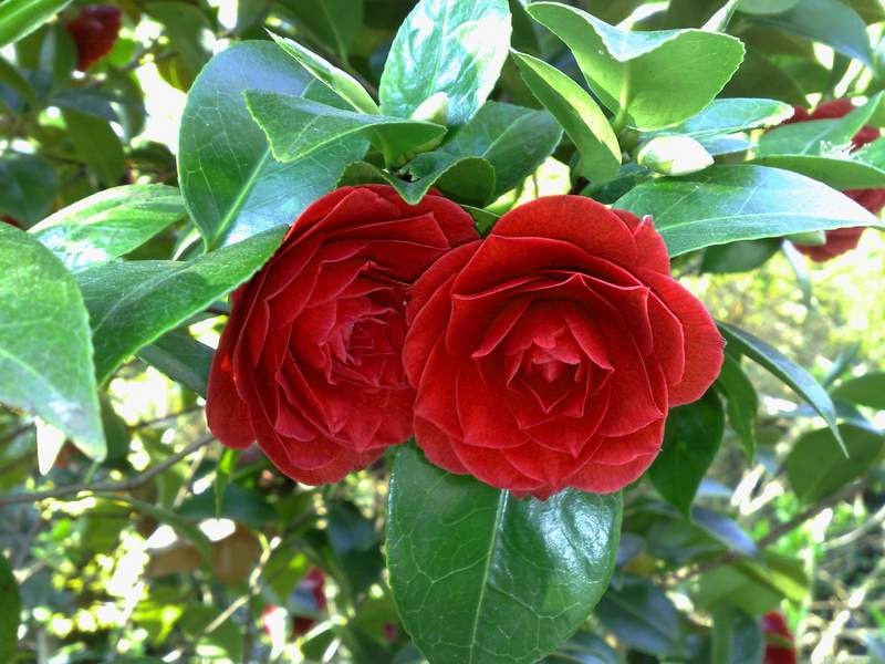 und wieder eine nicht echt herauskommende Kamelie von Peter Fischer:Ich hatte sie als C.japonica forma macrocarpa gekauft,aber da dürften die Blüten nicht gefüllt sein.Sicher auch wieder eine Verwechselung im Stecklingsbeet....