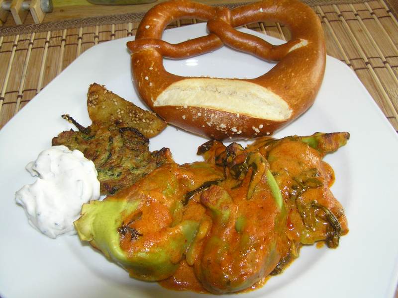 na gut...aber wirklich nur ganz unspektakuläre reste von gestern und vorgestern. dazu ne brezel.