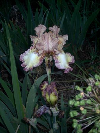 Hallo Irisfreunde!Meine stehen ganz geschützt im Steingarten,haben also eine "Fussbodenheizung" und blühen demendsprechend früh.Knick Knack war die erste,und ist schon verblüht.: