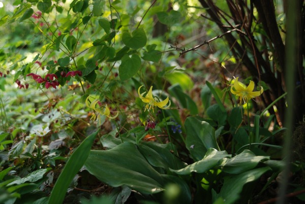 in diesem jahr spielen epimedium (rubrum?) und diverse trillium besonders schön zusammen!