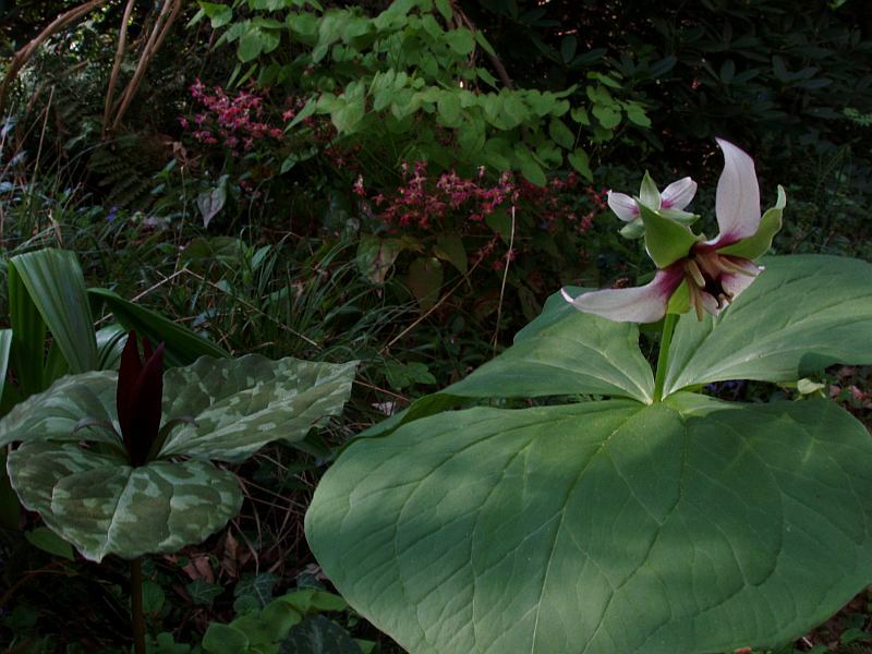 in diesem jahr spielen epimedium (rubrum?) und diverse trillium besonders schön zusammen!