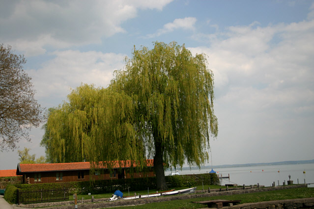 Die Trauerweiden in ihrem frisch-grünen Kleid.
