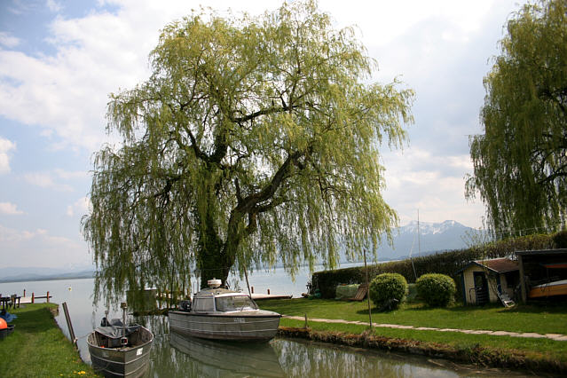 Die Trauerweiden in ihrem frisch-grünen Kleid.