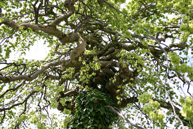 Das innere einer Baumkrone. Ich konnte nicht feststellen welcher Baum das sein könnte. Dem Blatt nach eine Buche. Aber das gewundene Astwerk sieht aus wie bei einer Korkenzieherhasl.