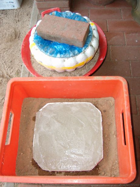 Hier nun das danebengegangene Ergebnis.Wenn die Aussentemperaturen wieder höher sind, probier ich es noch mal. Dann aber mit grobem Kies, einem grösseren Zementanteil und längerer Aushärtungszeit, dann wird es bestimmt was werden.
