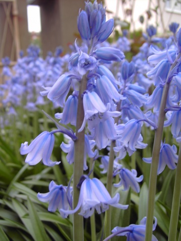 Himmelblaue Hyacinthoides hispanica im Vorgarten